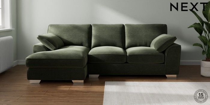 7.3.1 Buy Stamford Grand Relaxed Sit Medium Sofa Chaise - Left Hand Luxe Chenille Mid Green Large Square Angle - Chrome Metal from the Seasons online shop Click here to use our website with more accessibility support, for example screen readers