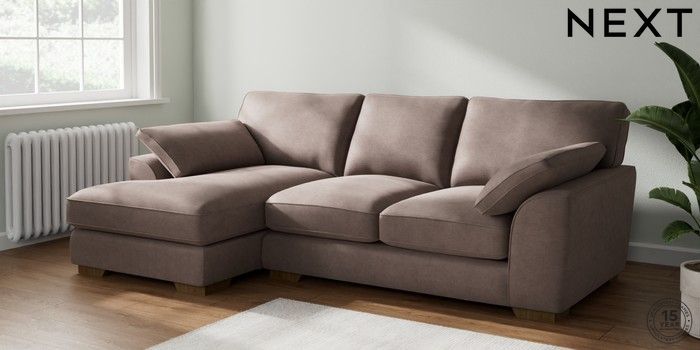7.2.10 Buy Stamford Grand Relaxed Sit Medium Sofa Chaise - Left Hand Luxe Chenille Mink Brown Large Square Angle - Mid from the Seasons online shop Click here to use our website with more accessibility support, for example screen readers