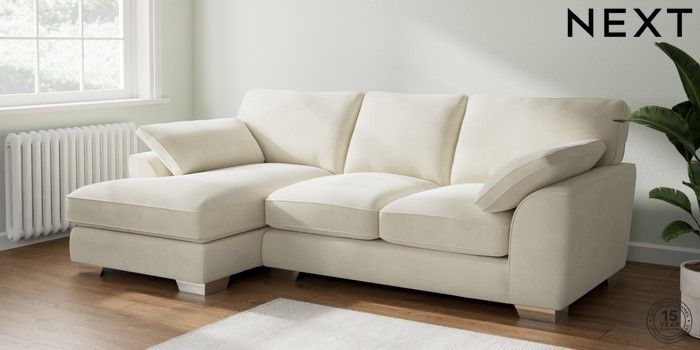 7.3.1 Buy Stamford Grand Relaxed Sit Medium Sofa Chaise - Left Hand Luxe Chenille Oyster Large Square Angle - Chrome Metal from the Seasons online shop Click here to use our website with more accessibility support, for example screen readers