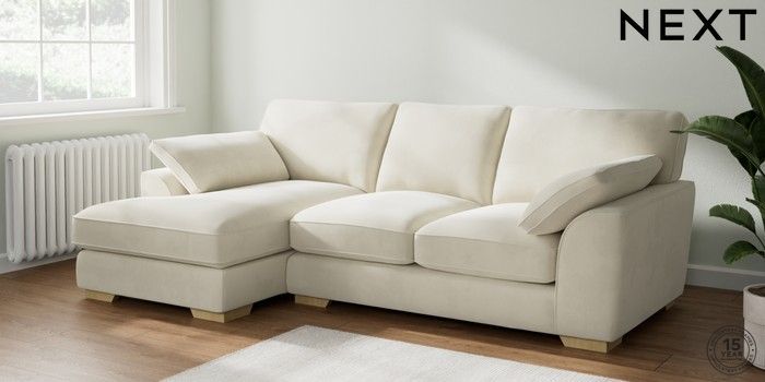 7.2.10 Buy Stamford Grand Relaxed Sit Medium Sofa Chaise - Left Hand Luxe Chenille Oyster Large Square Angle - Light from the Seasons online shop Click here to use our website with more accessibility support, for example screen readers