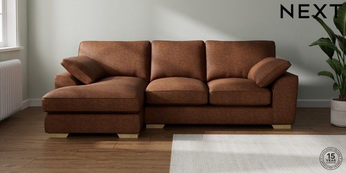 7.3.1 Buy Stamford Grand Relaxed Sit Medium Sofa Chaise - Left Hand Monza Faux Leather Easy Clean Chestnut Brown Large Square Angle - Light from the Seasons online shop Click here to use our website with more accessibility support, for example screen readers