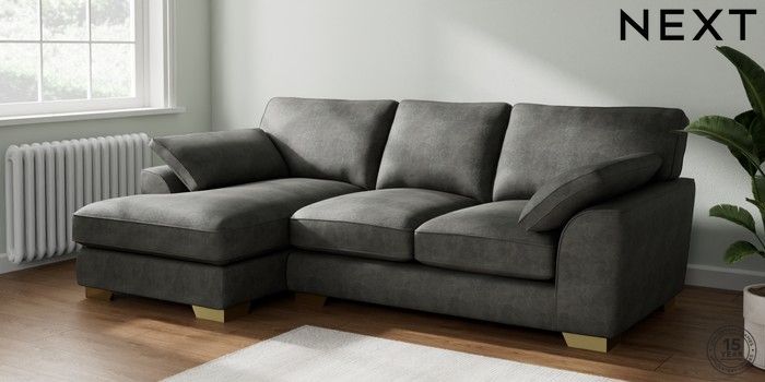 7.3.1 Buy Stamford Grand Relaxed Sit Medium Sofa Chaise - Left Hand Monza Faux Leather Easy Clean Dark Grey Large Square Angle - Brushed Brass from the Seasons online shop Click here to use our website with more accessibility support, for example screen readers
