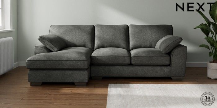 7.3.1 Buy Stamford Grand Relaxed Sit Medium Sofa Chaise - Left Hand Plush Chenille Dark Grey Large Square Angle - Gunmetal from the Seasons online shop Click here to use our website with more accessibility support, for example screen readers