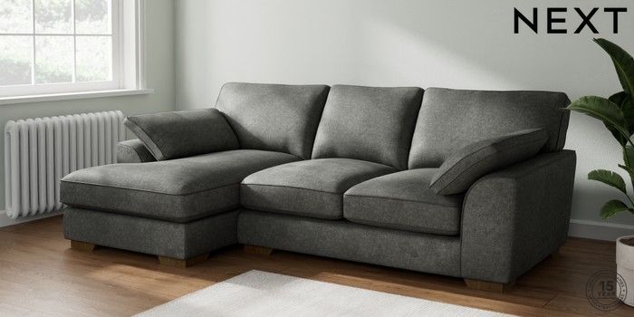 7.2.10 Buy Stamford Grand Relaxed Sit Medium Sofa Chaise - Left Hand Plush Chenille Dark Grey Large Square Angle - Mid from the Seasons online shop Click here to use our website with more accessibility support, for example screen readers