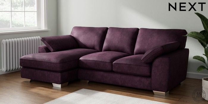 7.3.1 Buy Stamford Grand Relaxed Sit Medium Sofa Chaise - Left Hand Plush Chenille Dark Plum Purple Large Square Angle - Chrome Metal from the Seasons online shop Click here to use our website with more accessibility support, for example screen readers