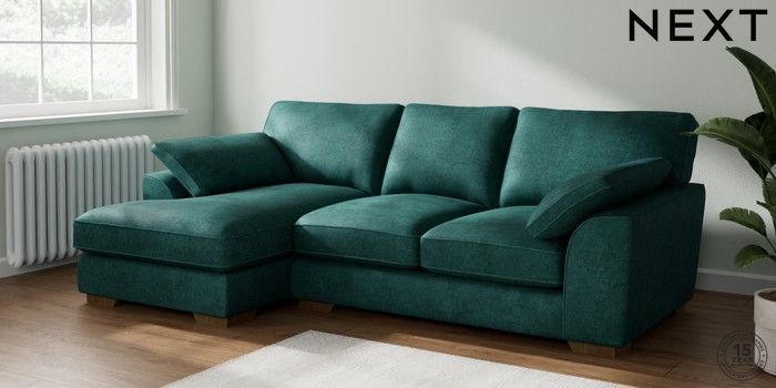 7.3.1 Buy Stamford Grand Relaxed Sit Medium Sofa Chaise - Left Hand Plush Chenille Dark Teal Green Large Square Angle - Mid from the Seasons online shop Click here to use our website with more accessibility support, for example screen readers