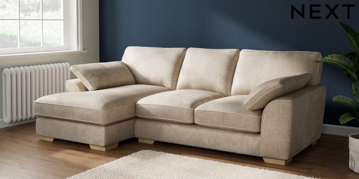 7.2.10 Buy Stamford Grand Relaxed Sit Medium Sofa Chaise - Left Hand Plush Chenille Light Natural Large Square Angle - Light from the Seasons online shop Click here to use our website with more accessibility support, for example screen readers
