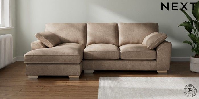 7.3.1 Buy Stamford Grand Relaxed Sit Medium Sofa Chaise - Left Hand Plush Chenille Mid Natural Large Square Angle - Chrome Metal from the Seasons online shop Click here to use our website with more accessibility support, for example screen readers