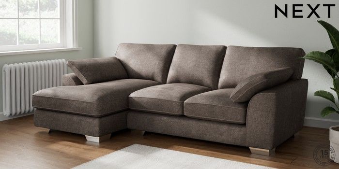 7.3.1 Buy Stamford Grand Relaxed Sit Medium Sofa Chaise - Left Hand Plush Chenille Mink Brown Large Square Angle - Chrome Metal from the Seasons online shop Click here to use our website with more accessibility support, for example screen readers