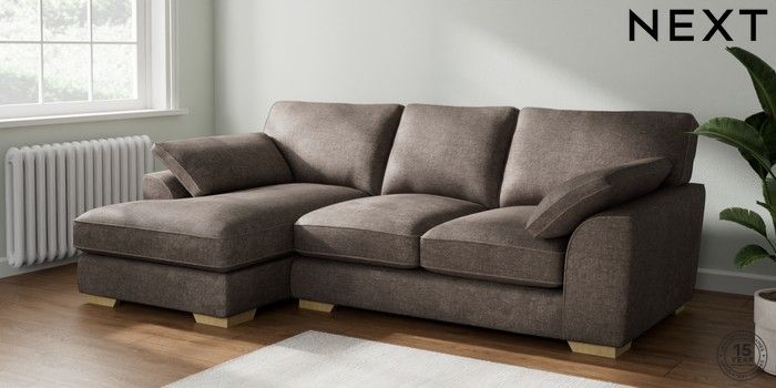 7.2.10 Buy Stamford Grand Relaxed Sit Medium Sofa Chaise - Left Hand Plush Chenille Mink Brown Large Square Angle - Light from the Seasons online shop Click here to use our website with more accessibility support, for example screen readers
