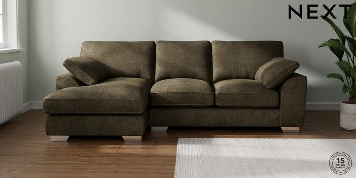 7.3.1 Buy Stamford Grand Relaxed Sit Medium Sofa Chaise - Left Hand Plush Chenille Moss Green Large Square Angle - Chrome Metal from the Seasons online shop Click here to use our website with more accessibility support, for example screen readers
