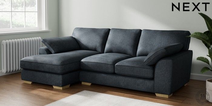 7.2.10 Buy Stamford Grand Relaxed Sit Medium Sofa Chaise - Left Hand Plush Chenille Slate Blue Large Square Angle - Light from the Seasons online shop Click here to use our website with more accessibility support, for example screen readers