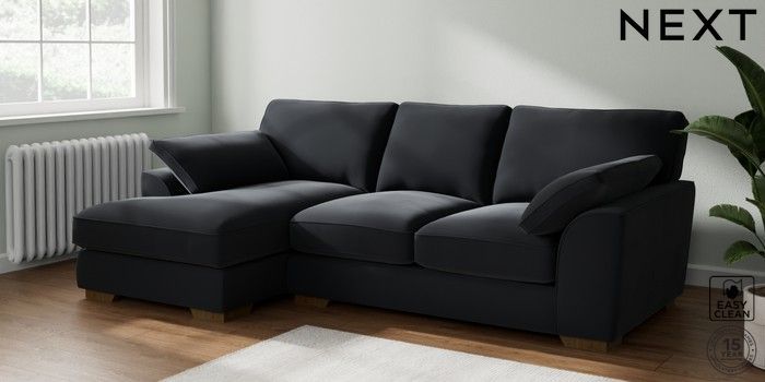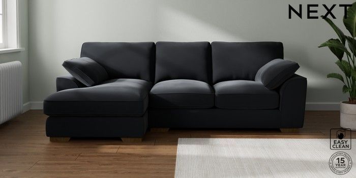 7.3.1 Buy Stamford Grand Relaxed Sit Medium Sofa Chaise - Left Hand Plush Velvet Easy Clean Charcoal Grey Large Square Angle - Mid from the Seasons online shop Click here to use our website with more accessibility support, for example screen readers