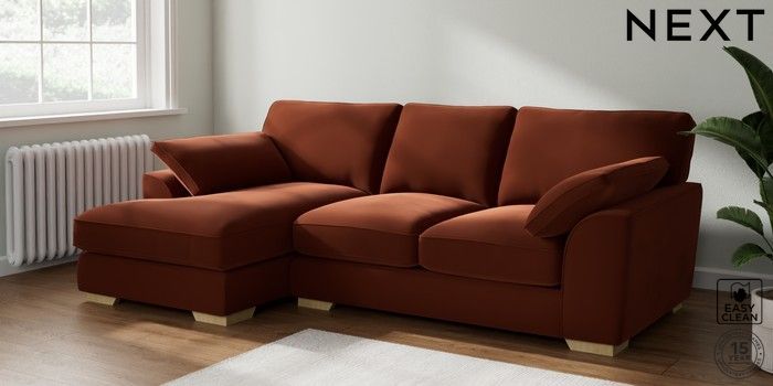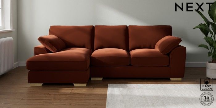 7.3.1 Buy Stamford Grand Relaxed Sit Medium Sofa Chaise - Left Hand Plush Velvet Easy Clean Ginger Orange Large Square Angle - Light from the Seasons online shop Click here to use our website with more accessibility support, for example screen readers