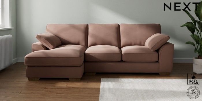 7.3.1 Buy Stamford Grand Relaxed Sit Medium Sofa Chaise - Left Hand Plush Velvet Easy Clean Mid Natural Large Square Angle - Mid from the Seasons online shop Click here to use our website with more accessibility support, for example screen readers