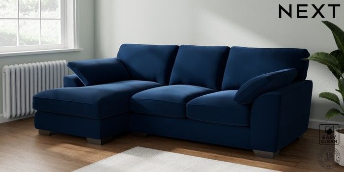 7.3.1 Buy Stamford Grand Relaxed Sit Medium Sofa Chaise - Left Hand Plush Velvet Easy Clean Navy Blue Large Square Angle - Gunmetal from the Seasons online shop Click here to use our website with more accessibility support, for example screen readers