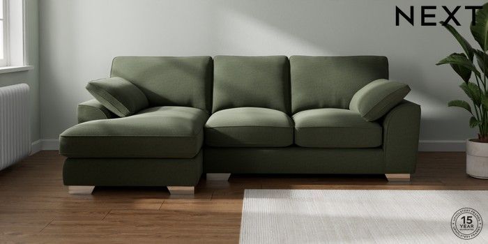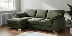 7.3.1 Buy Stamford Grand Relaxed Sit Medium Sofa Chaise - Left Hand Relaxed Linen Look Dark Green Large Square Angle - Chrome Metal from the Seasons online shop Click here to use our website with more accessibility support, for example screen readers