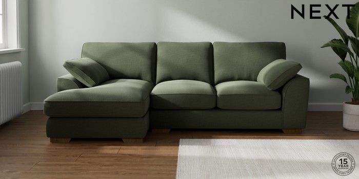 7.3.1 Buy Stamford Grand Relaxed Sit Medium Sofa Chaise - Left Hand Relaxed Linen Look Dark Green Large Square Angle - Mid from the Seasons online shop Click here to use our website with more accessibility support, for example screen readers