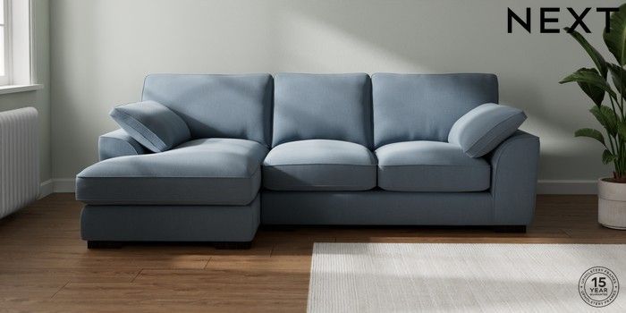 7.3.1 Buy Stamford Grand Relaxed Sit Medium Sofa Chaise - Left Hand Relaxed Linen Look Mid Blue Large Square Angle - Dark from the Seasons online shop Click here to use our website with more accessibility support, for example screen readers