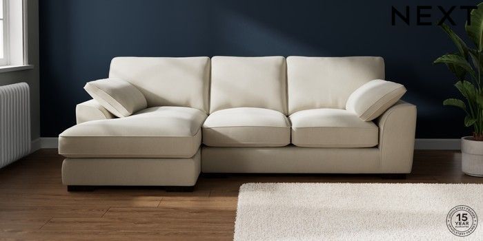 7.3.1 Buy Stamford Grand Relaxed Sit Medium Sofa Chaise - Left Hand Relaxed Linen Look Oyster Large Square Angle - Dark from the Seasons online shop Click here to use our website with more accessibility support, for example screen readers