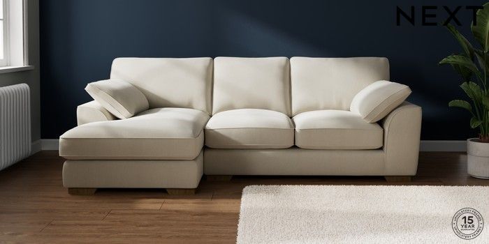 7.3.1 Buy Stamford Grand Relaxed Sit Medium Sofa Chaise - Left Hand Relaxed Linen Look Oyster Large Square Angle - Mid from the Seasons online shop Click here to use our website with more accessibility support, for example screen readers