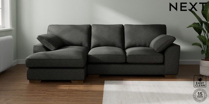 7.3.1 Buy Stamford Grand Relaxed Sit Medium Sofa Chaise - Left Hand Tweedy Blend Easy Clean Charcoal Grey Large Square Angle - Mid from the Seasons online shop Click here to use our website with more accessibility support, for example screen readers