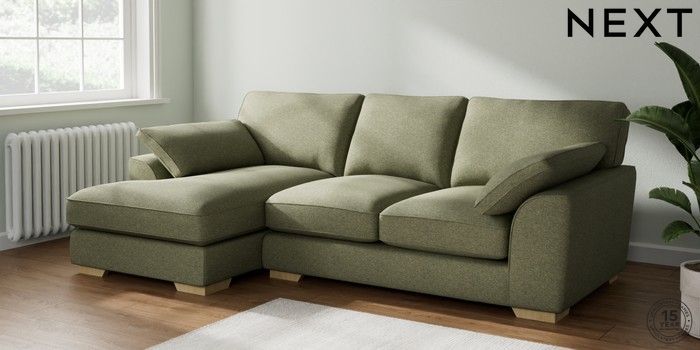 7.3.1 Buy Stamford Grand Relaxed Sit Medium Sofa Chaise - Left Hand Tweedy Chenille Mid Moss Green Large Square Angle - Light from the Seasons online shop Click here to use our website with more accessibility support, for example screen readers