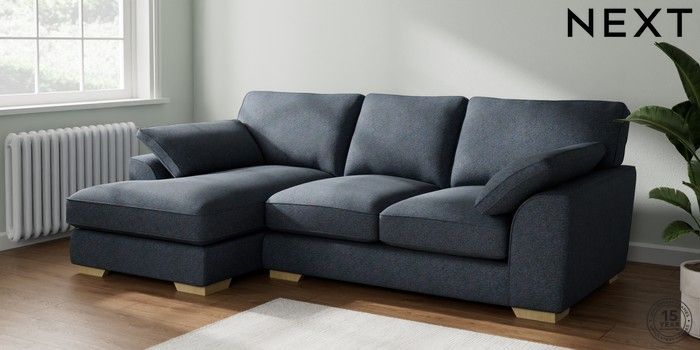 7.3.1 Buy Stamford Grand Relaxed Sit Medium Sofa Chaise - Left Hand Tweedy Chenille Navy Blue Large Square Angle - Light from the Seasons online shop Click here to use our website with more accessibility support, for example screen readers