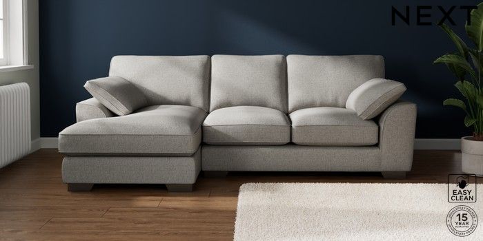 7.3.1 Buy Stamford Grand Relaxed Sit Medium Sofa Chaise - Left Hand Woven Chenille Easy Clean Light Grey Large Square Angle - Gunmetal from the Seasons online shop Click here to use our website with more accessibility support, for example screen readers