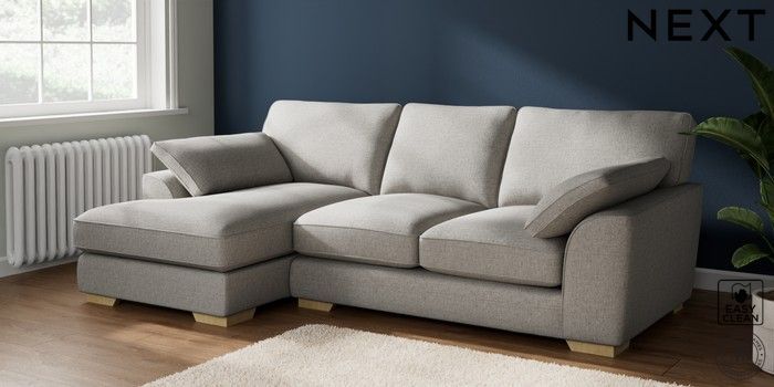 7.2.10 Buy Stamford Grand Relaxed Sit Medium Sofa Chaise - Left Hand Woven Chenille Easy Clean Light Grey Large Square Angle - Light from the Seasons online shop Click here to use our website with more accessibility support, for example screen readers