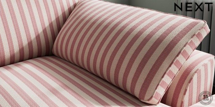 7.3.1 Buy Stamford Grand Relaxed Sit Medium Sofa Chaise - Right Hand Bold Chenille Stripe Dark Pink Large Square Angle - Chrome Metal from the Seasons online shop Click here to use our website with more accessibility support, for example screen readers