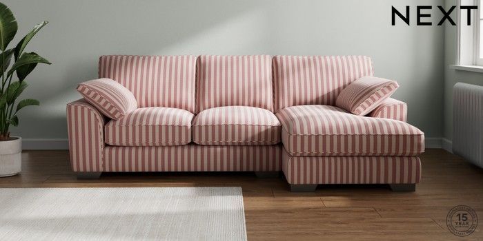 7.3.1 Buy Stamford Grand Relaxed Sit Medium Sofa Chaise - Right Hand Bold Chenille Stripe Dark Pink Large Square Angle - Gunmetal from the Seasons online shop Click here to use our website with more accessibility support, for example screen readers