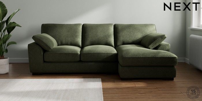 7.3.1 Buy Stamford Grand Relaxed Sit Medium Sofa Chaise - Right Hand Boucle Chenille Dark Moss Green Large Square Angle - Dark from the Seasons online shop Click here to use our website with more accessibility support, for example screen readers