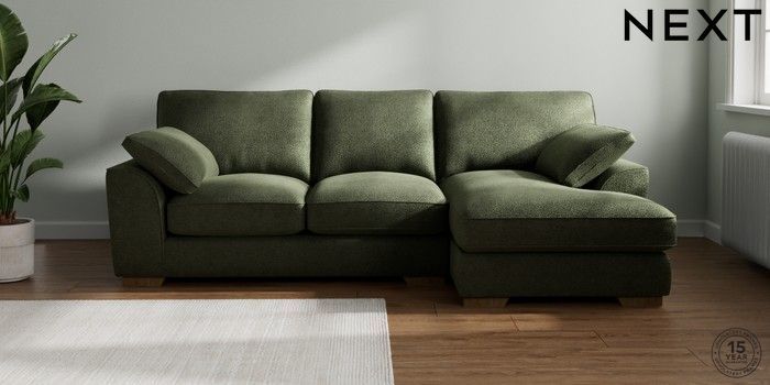 7.3.1 Buy Stamford Grand Relaxed Sit Medium Sofa Chaise - Right Hand Boucle Chenille Dark Moss Green Large Square Angle - Mid from the Seasons online shop Click here to use our website with more accessibility support, for example screen readers