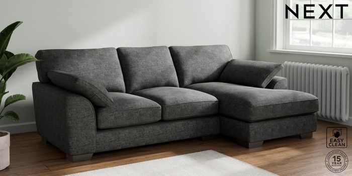 7.3.1 Buy Stamford Grand Relaxed Sit Medium Sofa Chaise - Right Hand Boucle Weave Easy Clean Charcoal Grey Large Square Angle - Gunmetal from the Seasons online shop Click here to use our website with more accessibility support, for example screen readers
