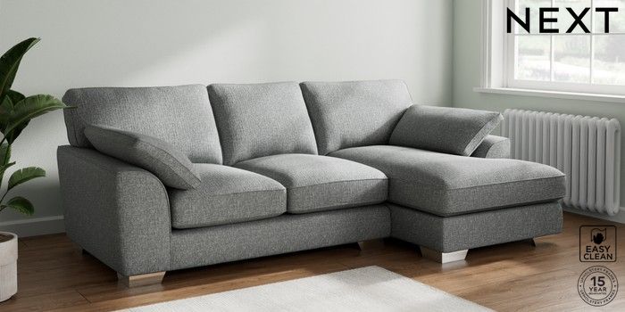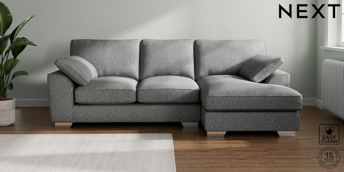 7.3.1 Buy Stamford Grand Relaxed Sit Medium Sofa Chaise - Right Hand Chunky Boucle Easy Clean Mid Grey Large Square Angle - Chrome Metal from the Seasons online shop Click here to use our website with more accessibility support, for example screen readers