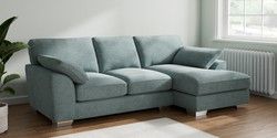 7.3.1 Buy Stamford Grand Relaxed Sit Medium Sofa Chaise - Right Hand Chunky Chenille Light Teal Green Large Square Angle - Chrome Metal from the Seasons online shop Click here to use our website with more accessibility support, for example screen readers