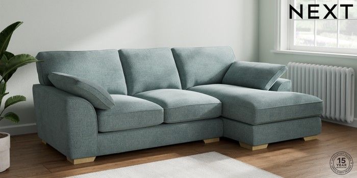 7.3.1 Buy Stamford Grand Relaxed Sit Medium Sofa Chaise - Right Hand Chunky Chenille Light Teal Green Large Square Angle - Light from the Seasons online shop Click here to use our website with more accessibility support, for example screen readers