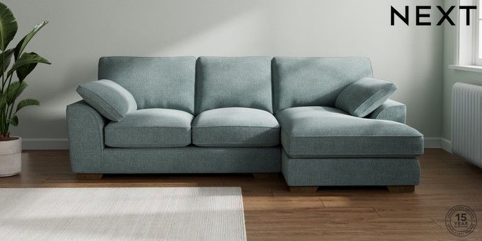 7.3.1 Buy Stamford Grand Relaxed Sit Medium Sofa Chaise - Right Hand Chunky Chenille Light Teal Green Large Square Angle - Mid from the Seasons online shop Click here to use our website with more accessibility support, for example screen readers