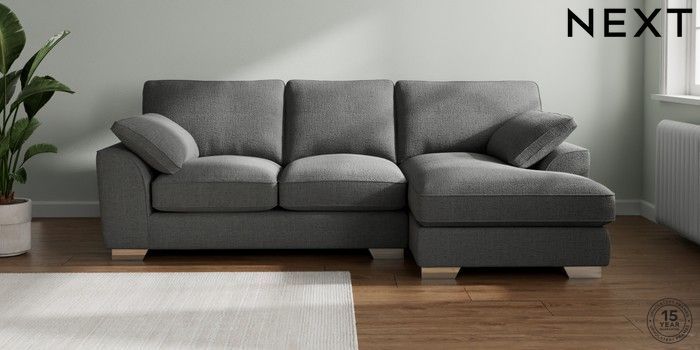 7.3.1 Buy Stamford Grand Relaxed Sit Medium Sofa Chaise - Right Hand Chunky Texture Dark Grey Large Square Angle - Chrome Metal from the Seasons online shop Click here to use our website with more accessibility support, for example screen readers