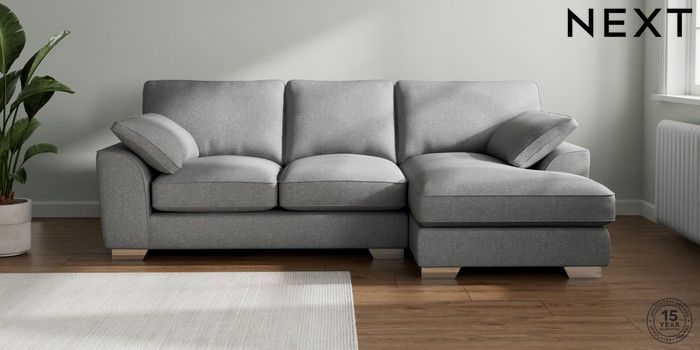 7.3.1 Buy Stamford Grand Relaxed Sit Medium Sofa Chaise - Right Hand Chunky Weave Mid Grey Large Square Angle - Chrome Metal from the Seasons online shop Click here to use our website with more accessibility support, for example screen readers
