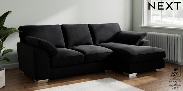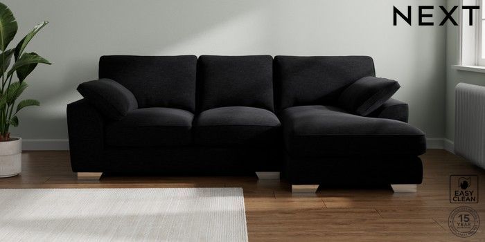 7.3.1 Buy Stamford Grand Relaxed Sit Medium Sofa Chaise - Right Hand Fine Chenille Easy Clean Black Large Square Angle - Chrome Metal from the Seasons online shop Click here to use our website with more accessibility support, for example screen readers