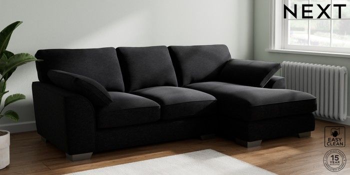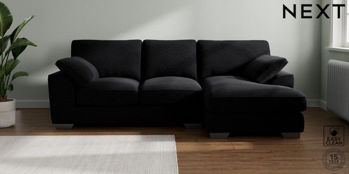 7.3.1 Buy Stamford Grand Relaxed Sit Medium Sofa Chaise - Right Hand Fine Chenille Easy Clean Black Large Square Angle - Gunmetal from the Seasons online shop Click here to use our website with more accessibility support, for example screen readers