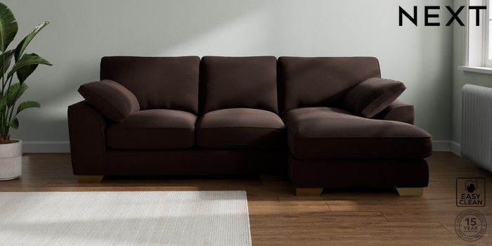 7.3.1 Buy Stamford Grand Relaxed Sit Medium Sofa Chaise - Right Hand Fine Chenille Easy Clean Chocolate Brown Large Square Angle - Brushed Brass from the Seasons online shop Click here to use our website with more accessibility support, for example screen readers