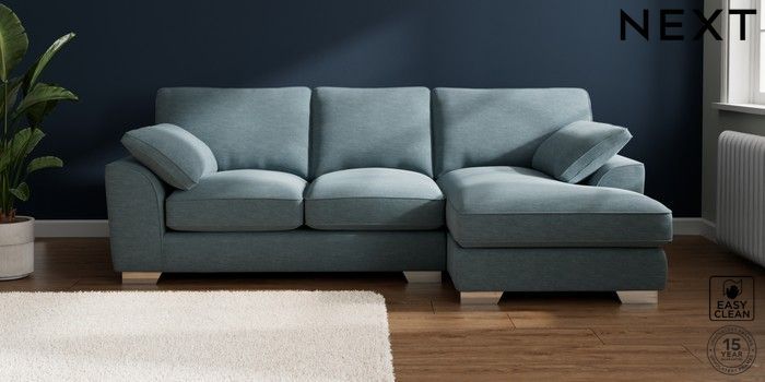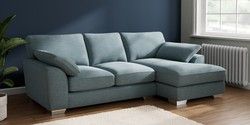 7.3.1 Buy Stamford Grand Relaxed Sit Medium Sofa Chaise - Right Hand Fine Chenille Easy Clean Mid Blue Large Square Angle - Chrome Metal from the Seasons online shop Click here to use our website with more accessibility support, for example screen readers