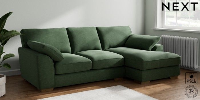 7.3.1 Buy Stamford Grand Relaxed Sit Medium Sofa Chaise - Right Hand Fine Chenille Easy Clean Mid Khaki Green Large Square Angle - Mid from the Seasons online shop Click here to use our website with more accessibility support, for example screen readers