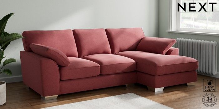 7.3.1 Buy Stamford Grand Relaxed Sit Medium Sofa Chaise - Right Hand Fine Chenille Easy Clean Mid Pink Large Square Angle - Chrome Metal from the Seasons online shop Click here to use our website with more accessibility support, for example screen readers