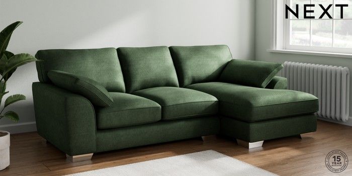 7.3.1 Buy Stamford Grand Relaxed Sit Medium Sofa Chaise - Right Hand Luxe Chenille Dark Green Large Square Angle - Chrome Metal from the Seasons online shop Click here to use our website with more accessibility support, for example screen readers