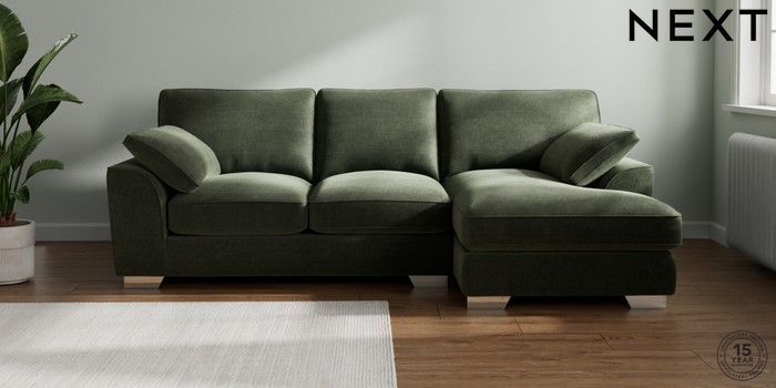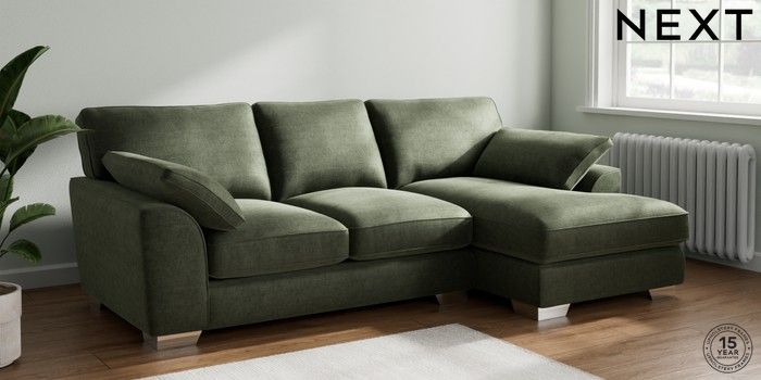 7.3.1 Buy Stamford Grand Relaxed Sit Medium Sofa Chaise - Right Hand Luxe Chenille Mid Green Large Square Angle - Chrome Metal from the Seasons online shop Click here to use our website with more accessibility support, for example screen readers