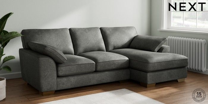 7.3.1 Buy Stamford Grand Relaxed Sit Medium Sofa Chaise - Right Hand Plush Chenille Dark Grey Large Square Angle - Brushed Brass from the Seasons online shop Click here to use our website with more accessibility support, for example screen readers